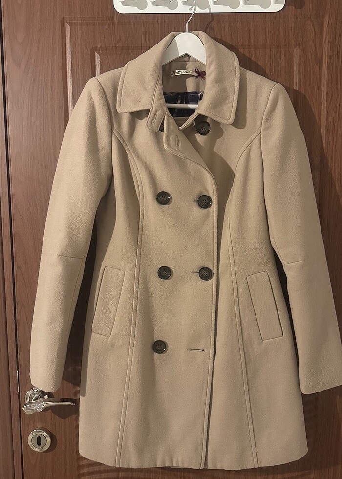 Hiç bir problemi yok. S beden, bej renk kaban.