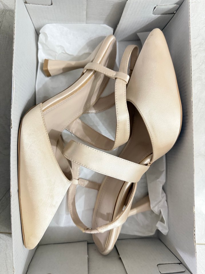 Bej renkli, ipeksi dokulu, ince kadeh topuklu kadın abiye ayakkabı, düğün ve modern tarzlar için uygundur.