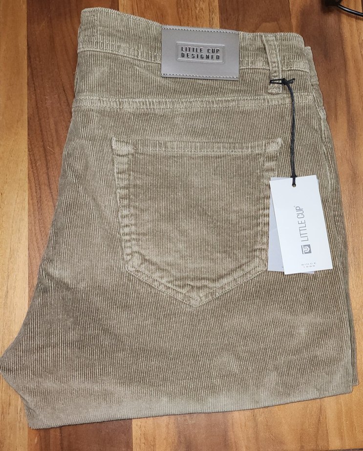 Bej renkte, düğmeli ve kadife kumaştan yapılmış erkek pantolonu. Rahat midi boyu ve regular fit kesimi ile günlük sokak tarzına uygundur.