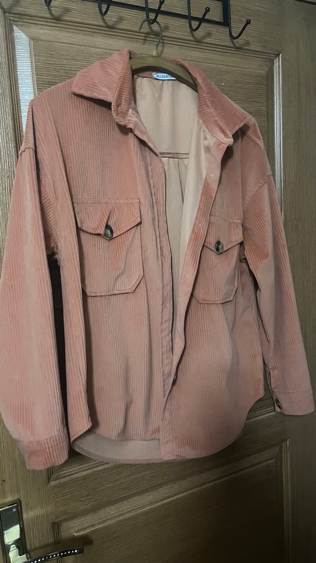 Bej renkte, kadife kumaştan yapılmış, düğmeli ve yakalı kadın gömlek. Uzun kollu, bol kesim ve midi boyda, rahat ve şık günlük kullanım için uygundur.