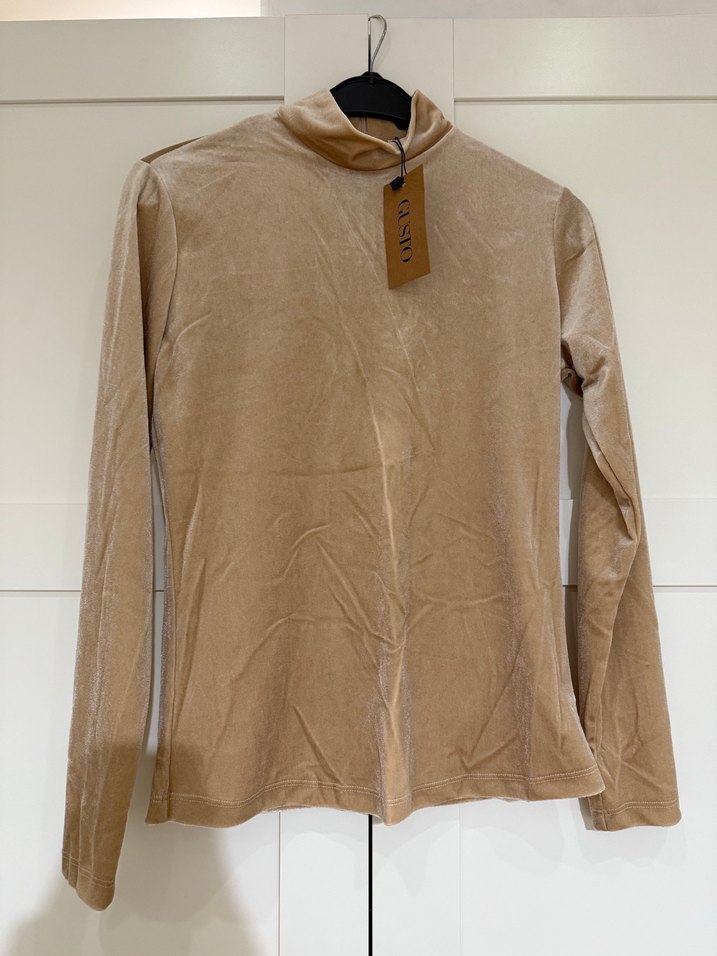 Yumuşak kadife kumaştan, yüksek yakalı ve uzun kollu kadın üst. Bej rengi ve normal boyu ile günlük kullanıma da şık kullanıma da uygun, rahat kesim ve şık tarz sunar. Yumuşacıktır ve sıcak tutar.