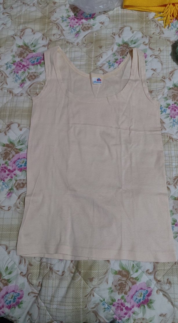 Yumuşak ve düz bej renkli kadın atlet, rahat kumaştan üretilmiştir.