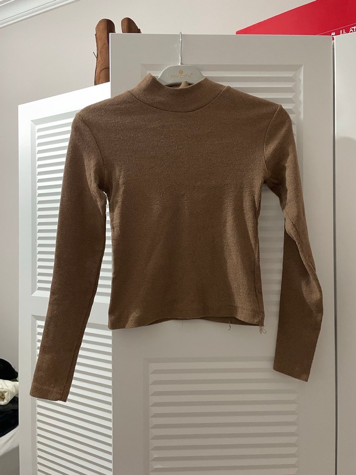 Bej renk, balıkçı yaka ve uzun kollu, ince ve yumuşak keten kumaştan yapılmış kadın trikosudur. Minimalist tarzda gündelik şıklık sunar.