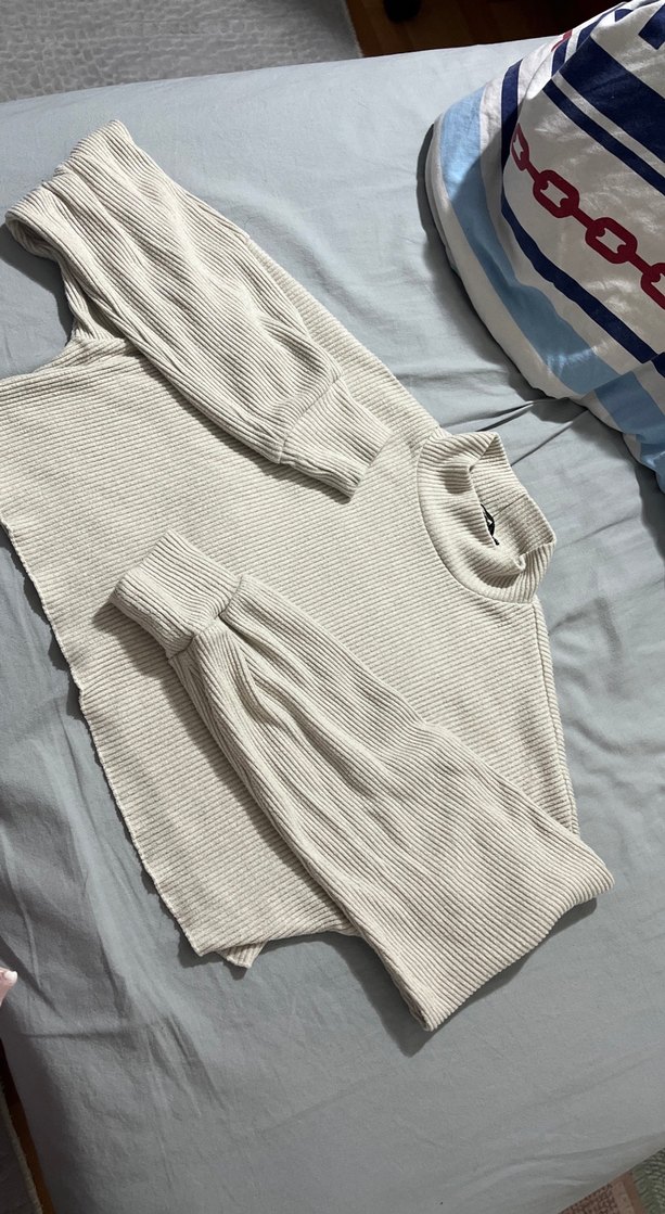 Bej renkte, keten kumaştan, uzun kollu ve balıkçı yakalı kadın kazak. Rahat kesimi ve düz tasarımı günlük kullanım için uygundur. Midi uzunluğunda, sade ve şık bir görünüm sunar.