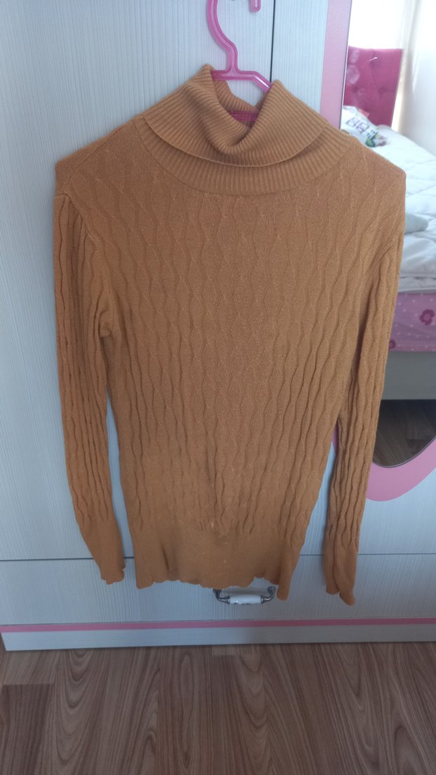 Bej renkte, uzun kollu, balıkçı yaka, örgü yapıda, vücuda oturan normal uzunlukta midi kadın kazak. Rahat ve sade sokak tarzına uygun.