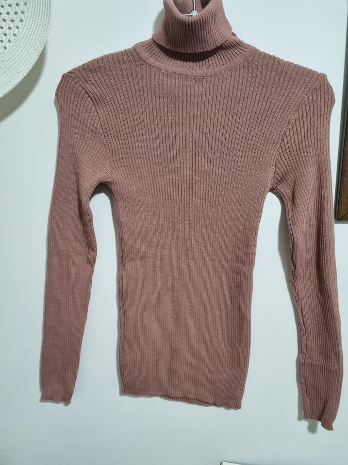Bej renk, balıkçı yaka ve uzun kollu, vücuda oturan triko kazak. Desensiz ve günlük kullanıma uygun.etiketsiz yeni
