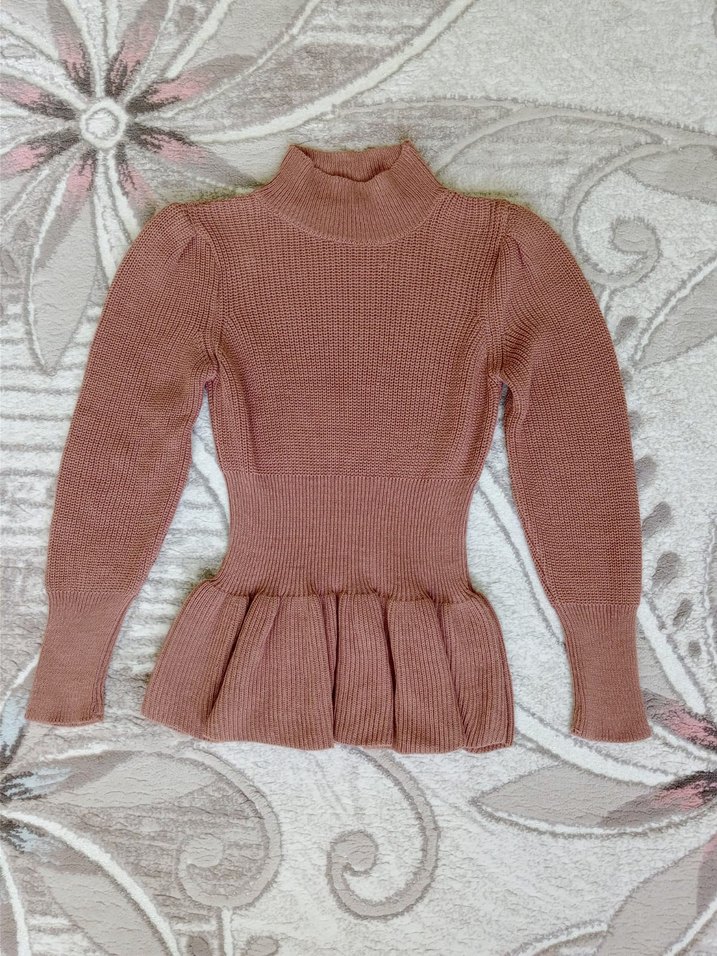 Bej renkli, balıkçı yaka ve uzun kollu, fit kesim triko kazak. Midi boy ve pileli etek ucu ile rahat ve şık bir görünüm sunar.