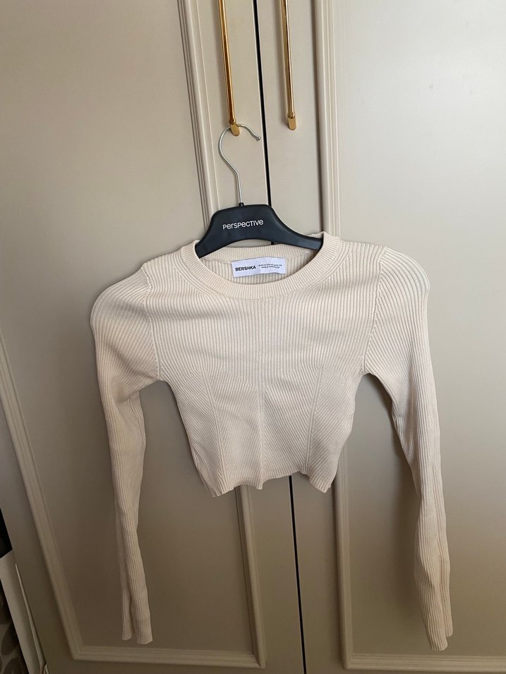 Bej renkli, uzun kollu ve bisiklet yaka kadın kazak, yumuşak örme kumaştan üretilmiştir. Minimalist ve desensiz tasarımı günlük kullanıma uygundur. 1 defa giyilmiştir. Hiçbir kusuru yoktur. Küçük geldiği için satıyorum.