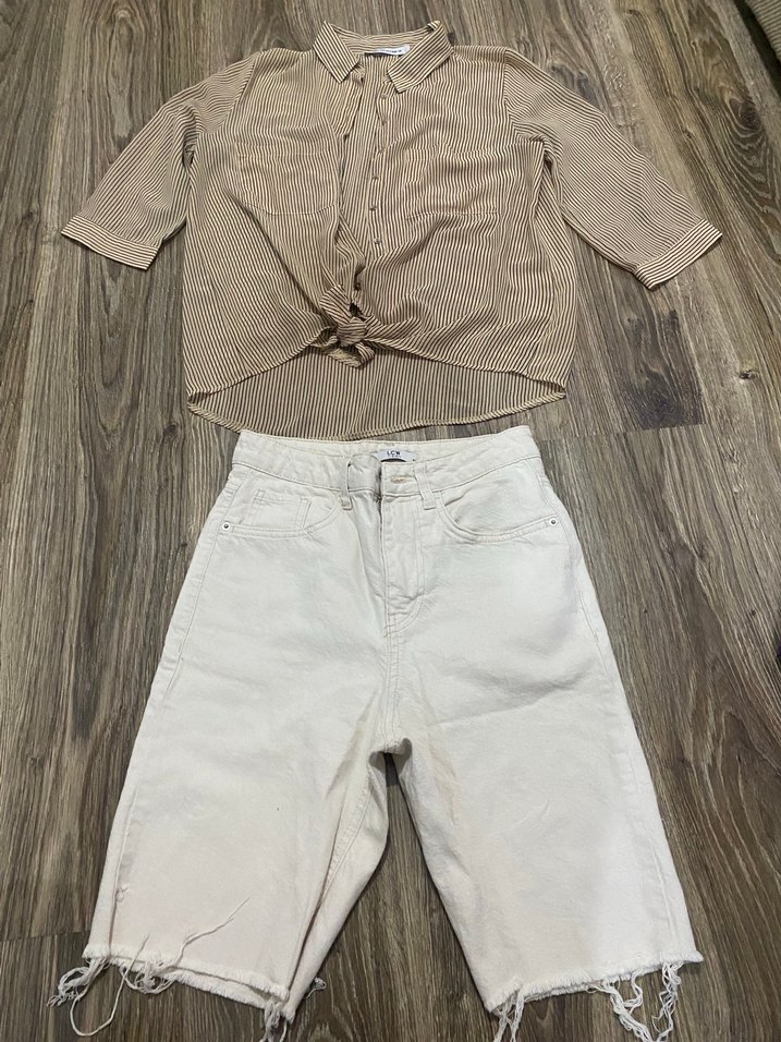 Bej Kadın Bermuda Şort Mini ve gömlek