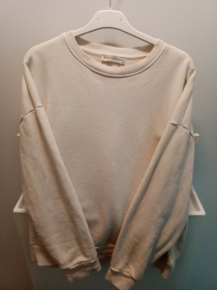 Bej renkli, bisiklet yaka ve uzun kollu, salaş kesim sweatshirt. Yumuşak pamuklu kumaştan, günlük rahat ve sokak stili için uygun.