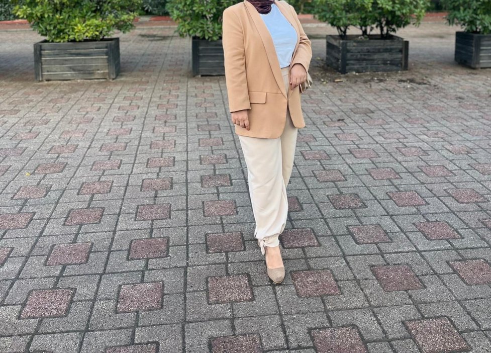 Bej renkte, notalı yaka ve uzun kollu kadın blazer ceket. Normal boy ve regular fit kesimiyle, günlük sokak stiline uygun, desensiz ve şık bir tasarım.