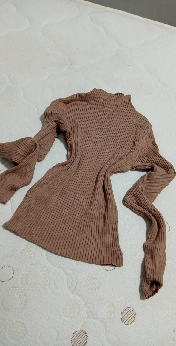 Bej renkli, boğazlı ve fit kesimli kadın kazak. Yumuşak örme kumaştan, uzun kollu ve desensiz. Rahat ve günlük stil için uygun, pastel tonlarda.