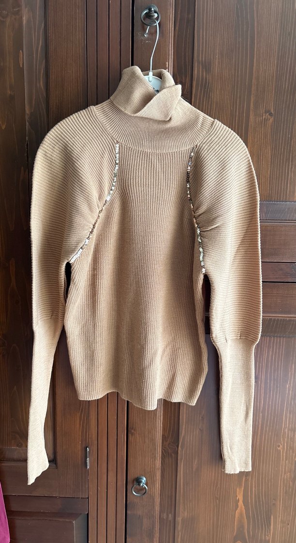 Bej renkli, boğazlı, uzun kollu ve vücuda oturan triko kazak. Parlak dokusu ve rahat kesimiyle günlük şıklık sunar.