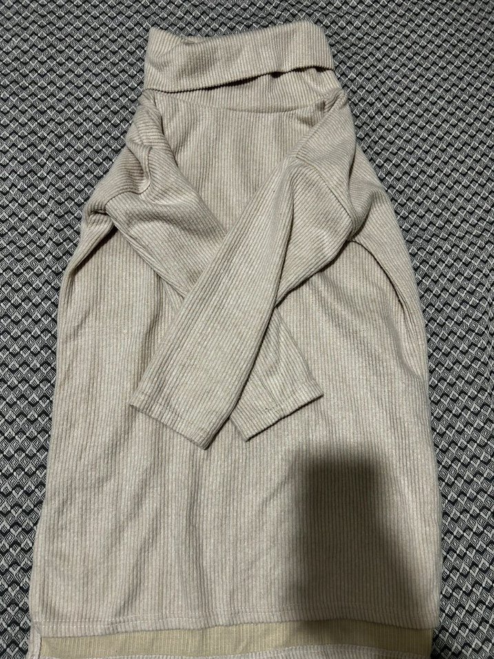 Bej renkli kadın triko kazak, boğazlı ve uzun kolludur. İnce ve vücuda oturan yapısı ile midi boyda, rahat ve sıcak bir dokunuş sunar.