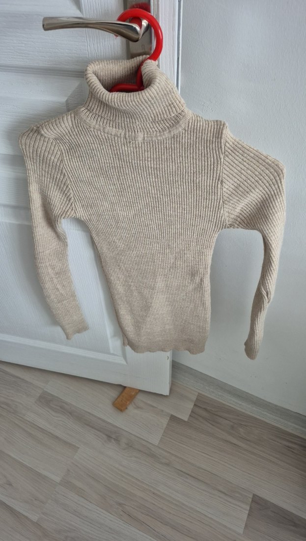 Bej renkli, boğazlı ve uzun kollu kadın triko kazak, ince ve vücuda oturan kesime sahiptir. Örgü kumaştan yapılmış, rahat ve desen içermeyen günlük kullanıma uygun bir parçadır.