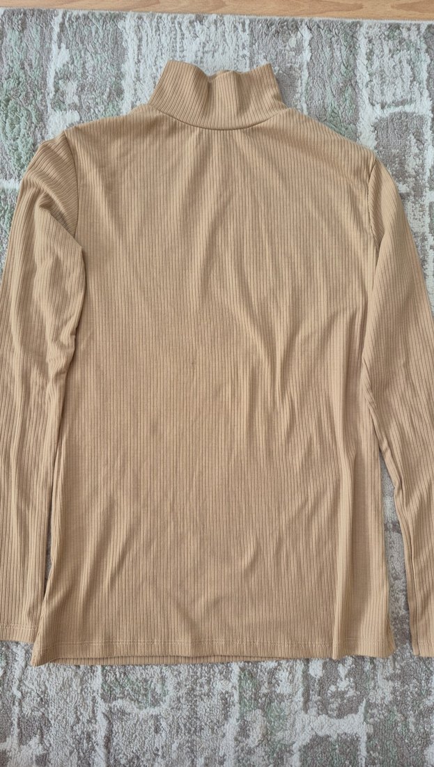Bej renkli, boğazlı ve uzun kollu bu kadın trikosu, yumuşak sentetik kumaştan üretilmiştir. Sokak stili ve günlük kullanım için rahat, sade bir tasarıma sahiptir.
