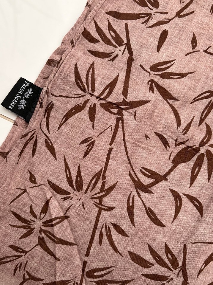 Bej renkli, koyu kahverengi bohem yaprak desenli kadın şalı.