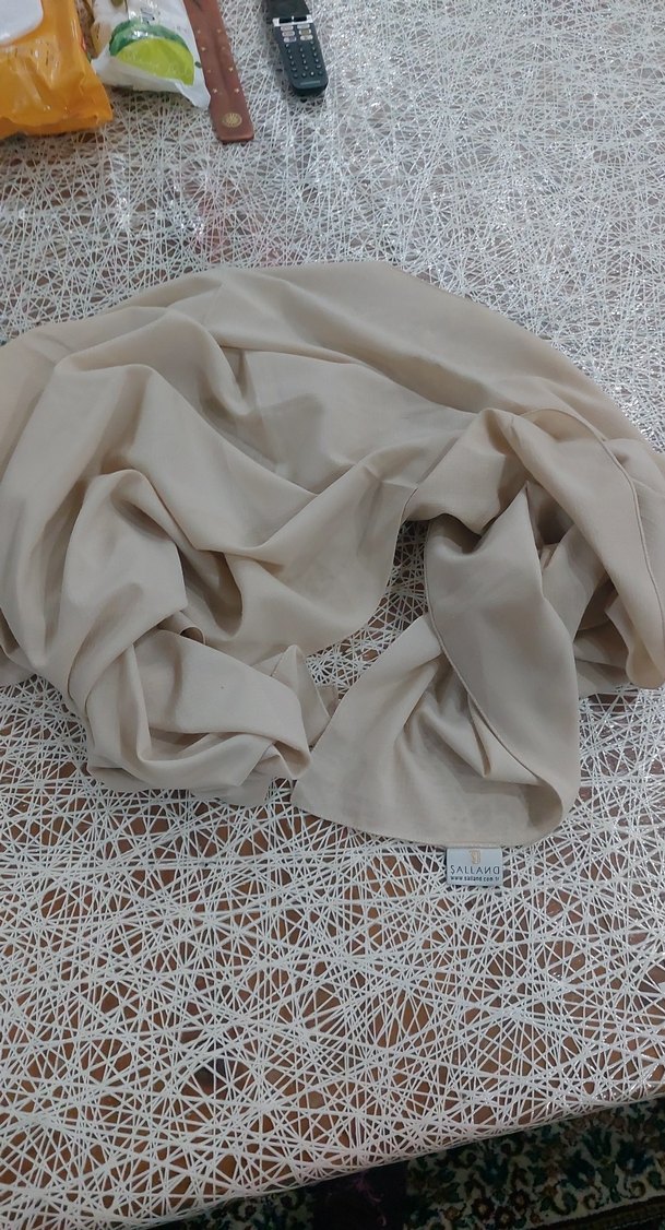 Yumuşak sentetik kumaştan yapılmış, drapeli bej kadın şal. Bohem ve retro tarzlara uygun, hippie görünüm için ideal.