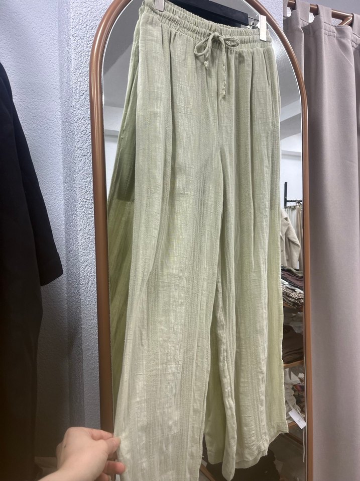 Bej Kadın Bol Kesim Keten Pantolon