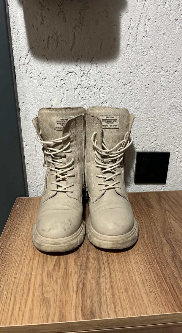 Bej renkli, lastik malzemeden yapılmış kadın botları. Sokak stili ve rock punk havasıyla günlük kullanıma uygun, desen içermeyen şık botlar.