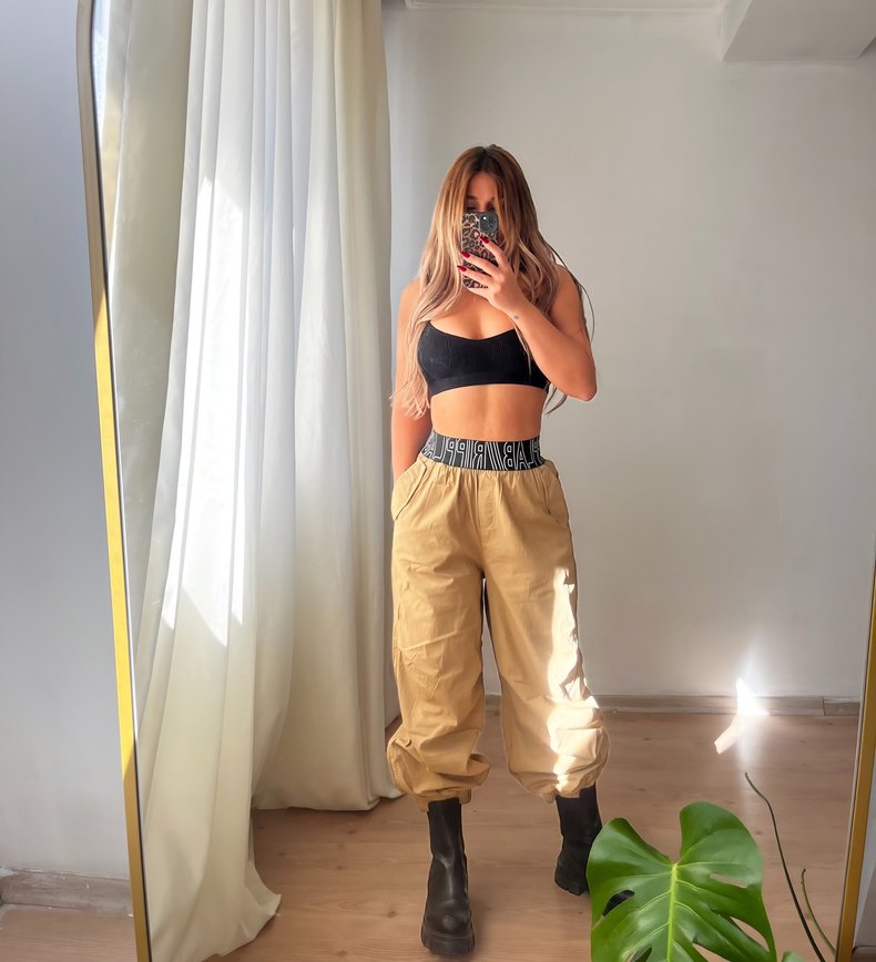 Bej renkli, bol kesim kadın boyfriend denim pantolon, normal midi boy, sokak stili ve rahat şıklık sunar, günlük kullanım için uygundur.
