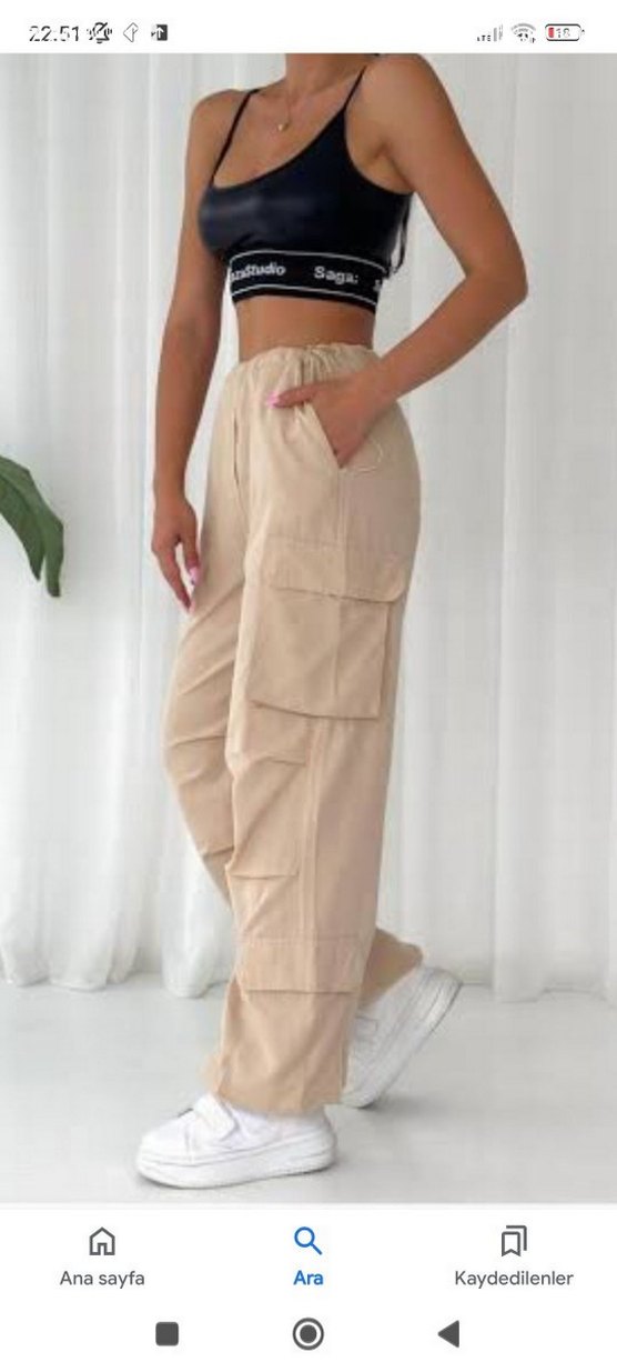 Rahat kesim, midi boy, büyük cepli bej kadın boyfriend pantolon. Yumuşak sentetik kumaştan, günlük sokak stili için ideal, zahmetsiz şıklık sunar.