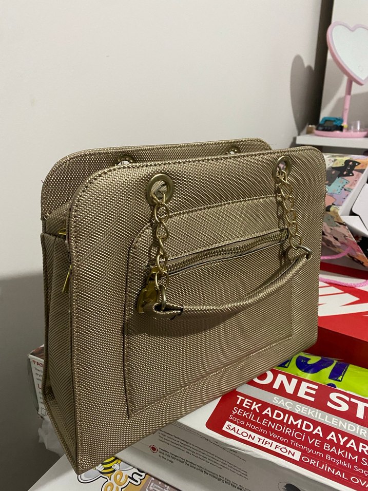 Bej renkte, ve fermuarlı kadın çantası.modern klasik tarzda, sentetik kumaştan üretilmiştir. Günlük kullanıma uygundur. sapları içinde mevcut