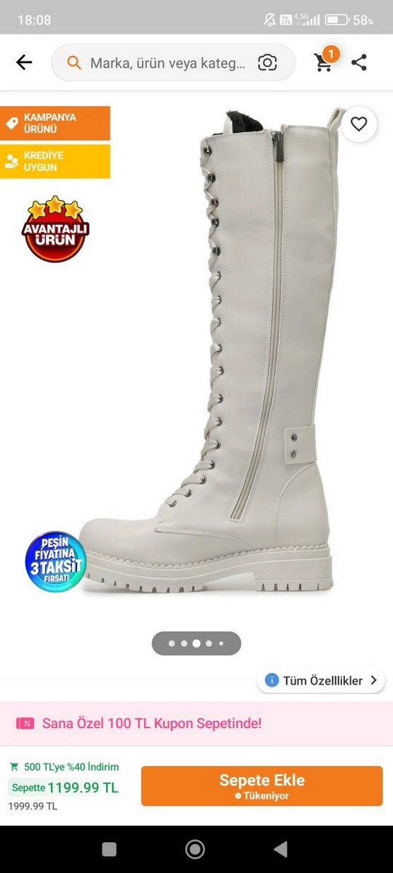 yan fermuarlı ve bağcıklı günlük sokak stili çizme. dar geldi hiç kullanmadım iade süreci de geçtiği için elimde kaldı