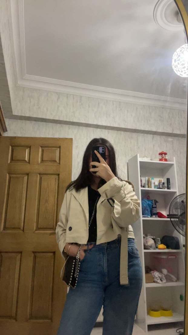 Bej Kadın Denim Trençkot oversize