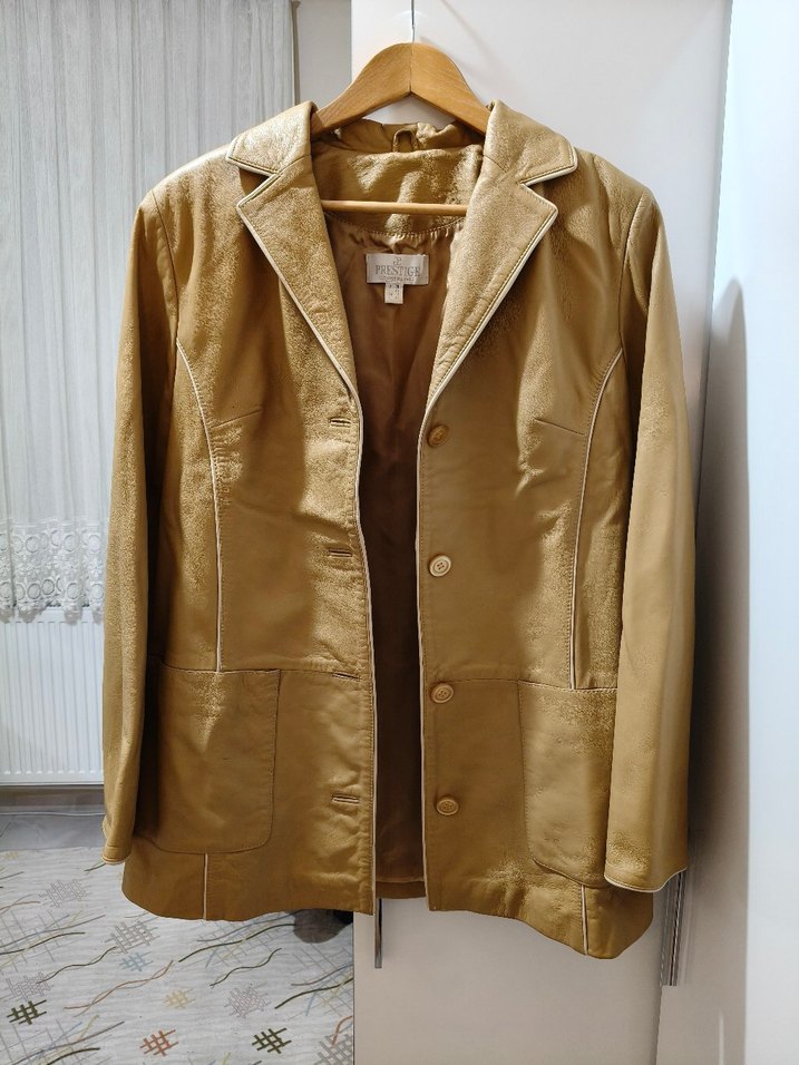 Orijinal Prestige Paris etiketli hakiki deri ceket. Yumuşak ve kaliteli Avrupa deri 38 beden, klasik ve rahat kalıp. Deformasyon yok, çok temiz. Sandık muhafazası Detaylar fotoğraflarda