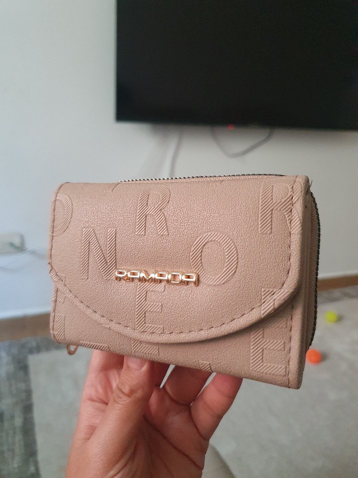 Bej renkli, baskılı desenli, tokalı deri kadın cüzdanı, günlük kullanım için uygun, trend sokak stiliyle uyumlu.