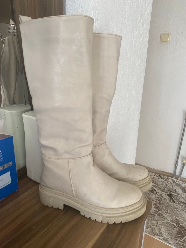 Bej renkli, blok topuklu ve deri malzemeden dizüstü botlar. Rahat ve bohem tarzıyla günlük kullanıma uygun, zahmetsiz şıklık sunar. Geri iadem yoktur