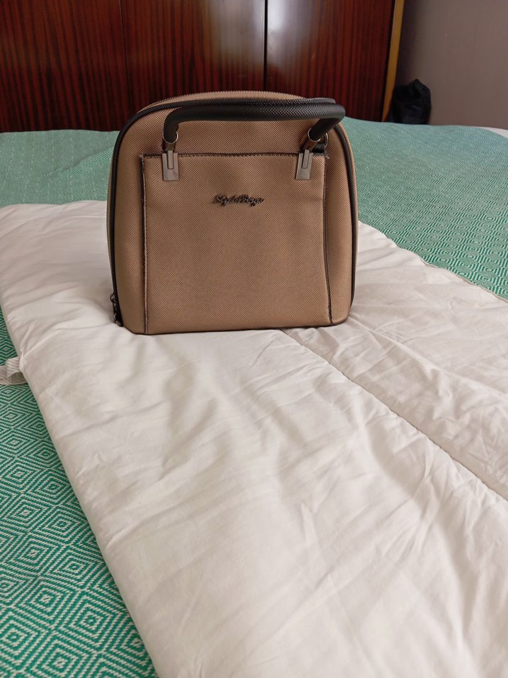 Bej renkli deri kadın çantası, fermuarlı ve minimalist çağdaş tasarıma sahip. Klasik zarafet ve günlük kullanım için uygundur.
