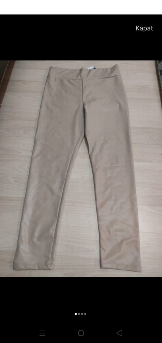Düz bej deri tayt, rahat regular fit ve sentetik dokusuyla günlük sokak stili için uygun, zahmetsiz şıklık sunar. ️ . 95kg kadar oluyor
