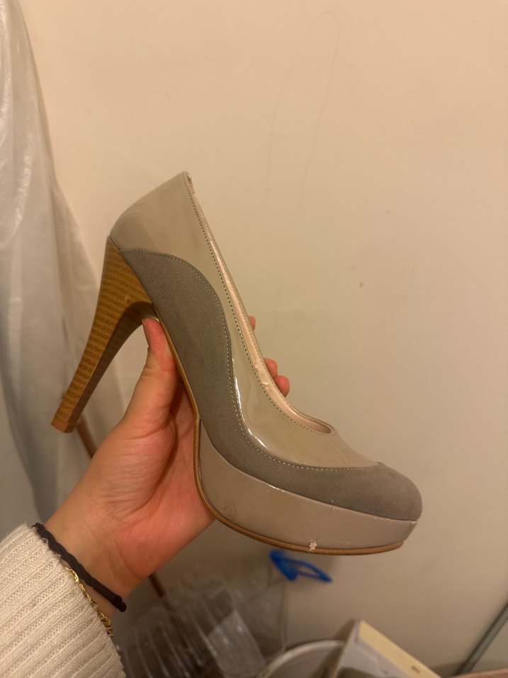 Bej renkli, tokalı dolgu topuklu ayakkabılar, kauçuk malzemeden üretilmiş, gündelik şıklık için uygundur. Desensiz, Paris tarzı bir görünüme sahiptir.
