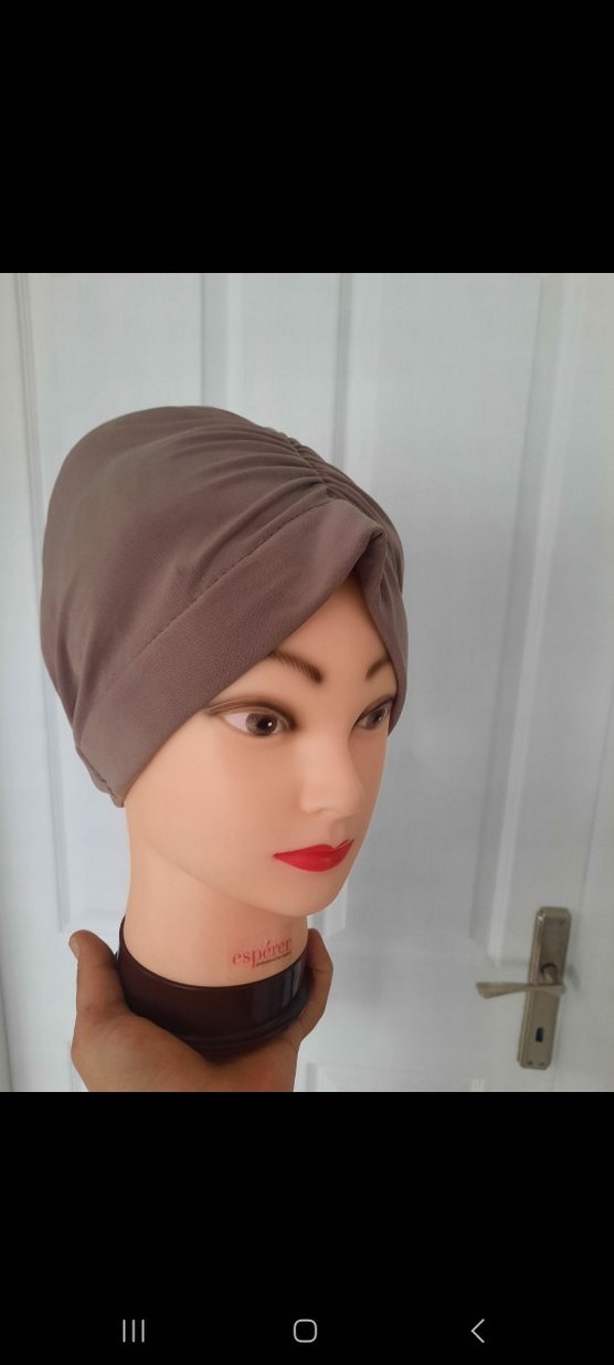 Bej renkli kadınlar için tasarlanmış, sentetik kumaştan drapeli bone. Minimalist ve mütevazı tarzı yansıtır, rahat bir kullanım sunar.