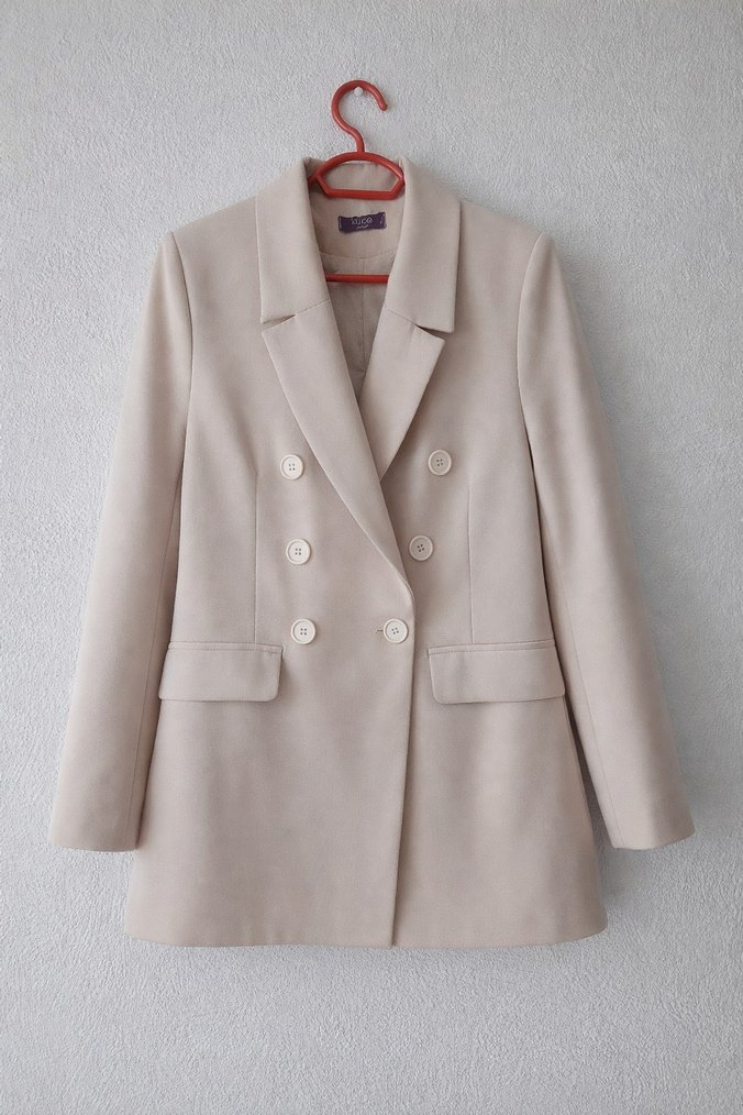 Bej Kadın Düğmeli Blazer Ceket