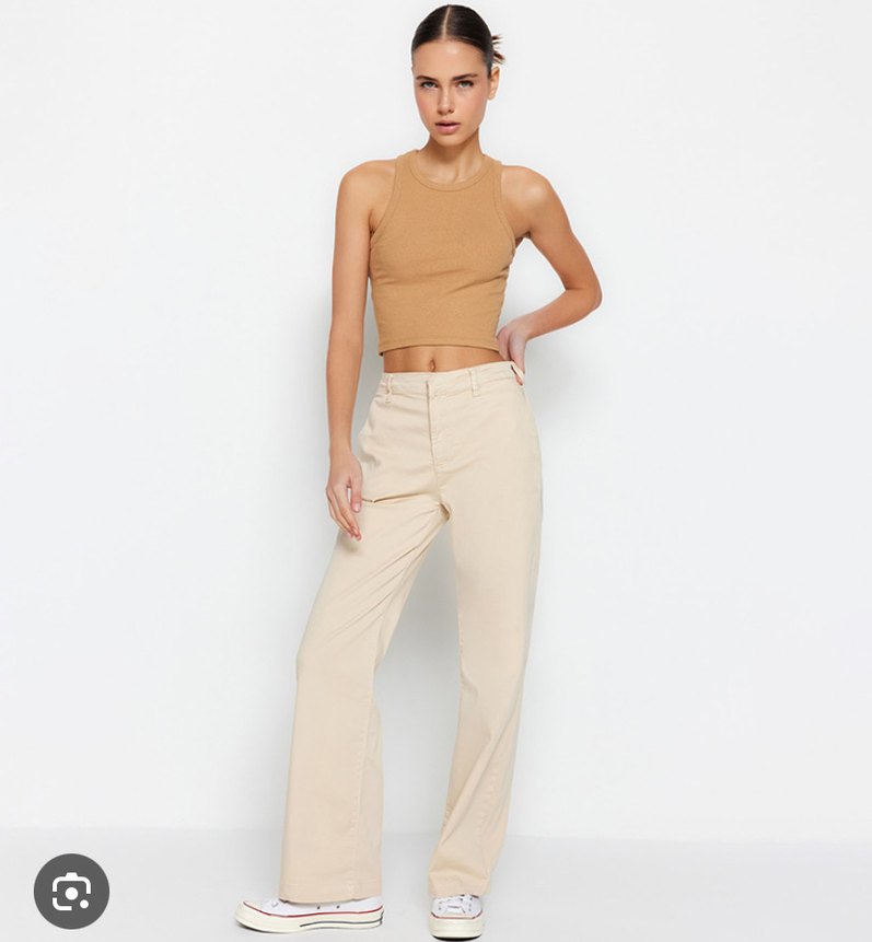 Bej Kadın Düz Kesim Pamuk Pantolon