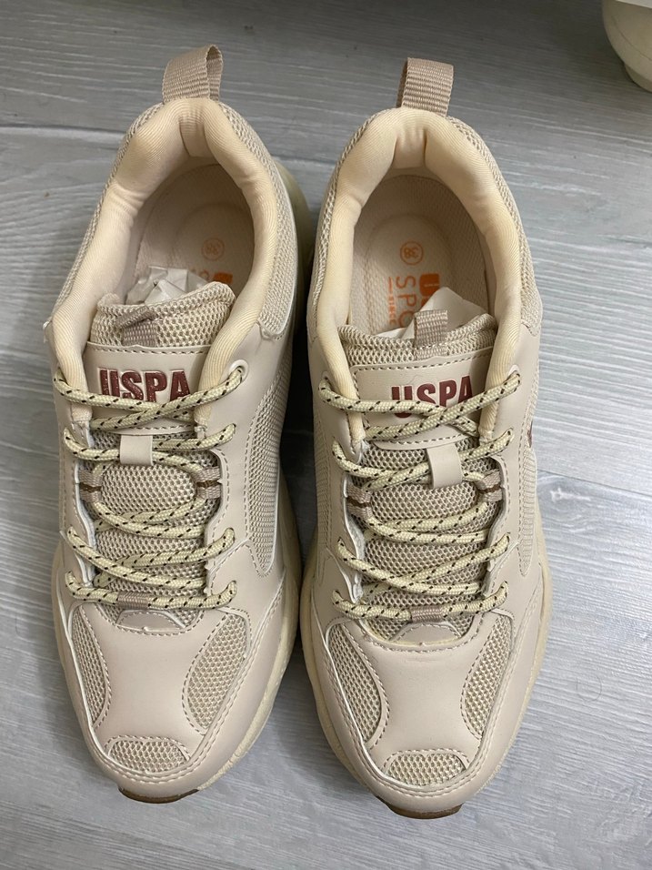 Bej renkte, dolgu topuklu, bağcıklı kadın/erkek spor ayakkabısı. Kauçuk malzemeden üretilmiş, günlük sokak stili için uygun, ISP markalı. Sıfır ürün 38 numara , hem erkekler hem de kadınlar için uygundur.