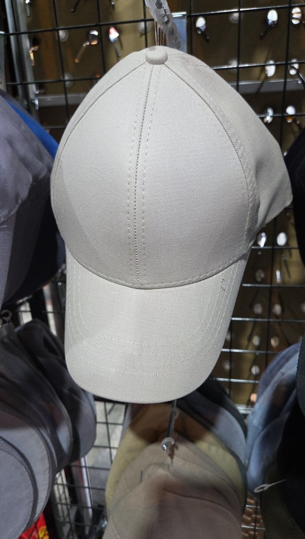 Sentetik kumaştan bej kadın spor şapka, ayarlanabilir Velcro bantlı. Rahat athleisure tarzına uygun.