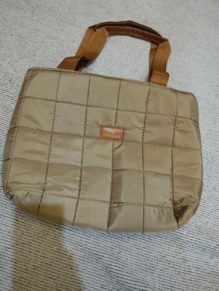 Sentetik kumaştan yapılmış, fermuarlı bej kadın çanta. Günlük kullanıma uygun sade ve dayanıklı sapları vardır.