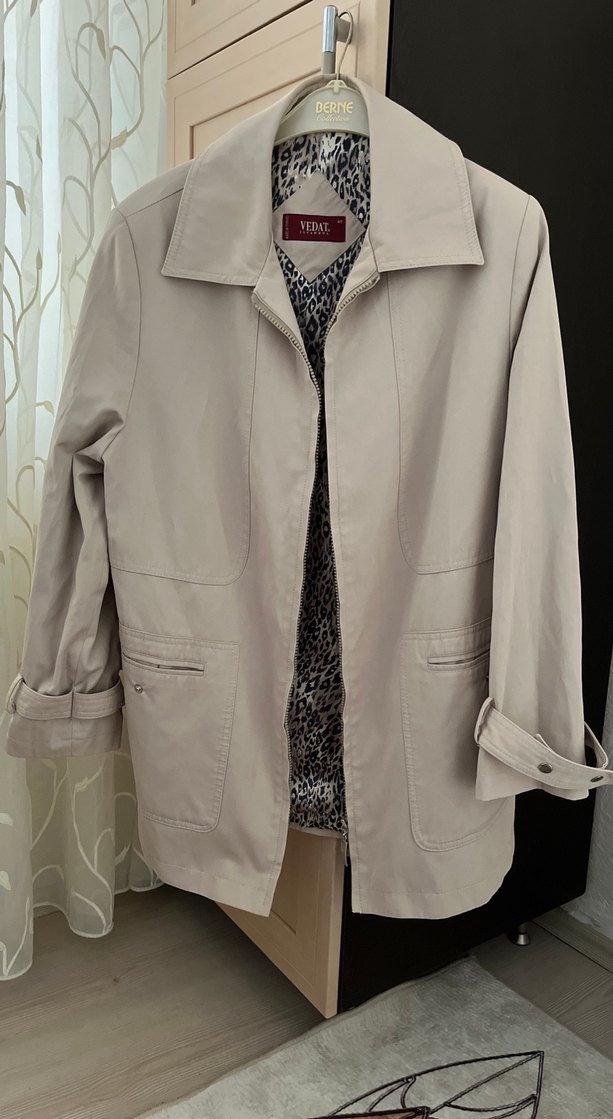 Bej renkte, fermuarlı ve kesik yaka detaylı kadın midi ceket, uzun kollu ve bol kesimdir. Hiç bir kusuru yoktur. Butik ürünüdür marka temsilidir