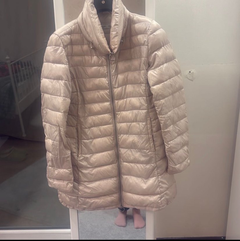 Bej renkli, fermuarlı ve yüksek yakalı kadın montu, midi boyda ve vücuda oturan kesimde, yumuşak kaz tüyü kumaştan üretilmiştir. Uzun kolludur ve rahat sokak modasına uygundur.