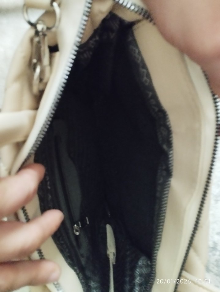 Bej renkte, fermuarlı, suni kumaştan kadın çantası. Desensiz ve sokak modasına uygun, günlük kullanıma elverişli.