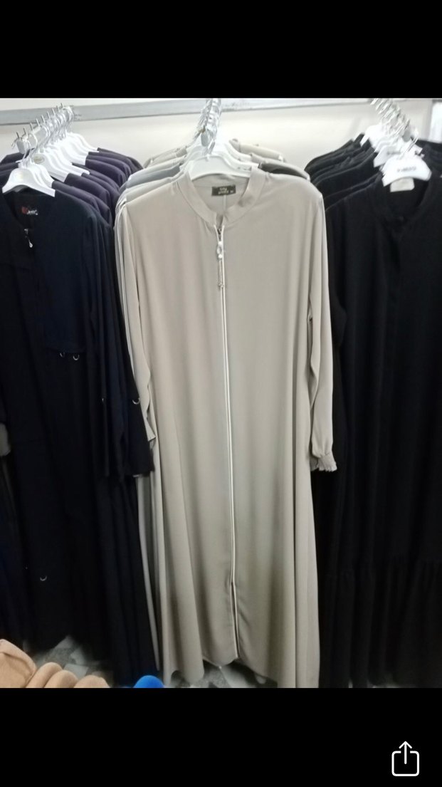 Bu kadın uzun elbise, yüksek yakalı, uzun kollu ve fermuarlı ön yapıya sahiptir. Bej renkte, bol kesim ve sentetik yumuşak kumaştan üretilmiştir, sade günlük giyim için uygundur.