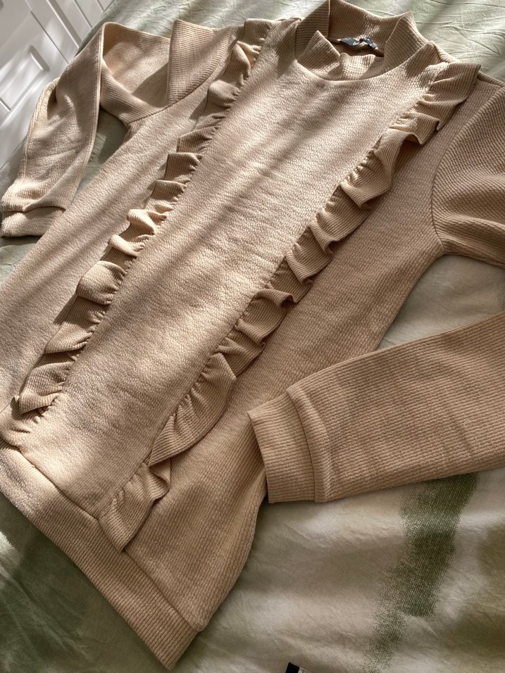 Bej Kadın Fırfırlı Uzun Kollu Kazak, bluz