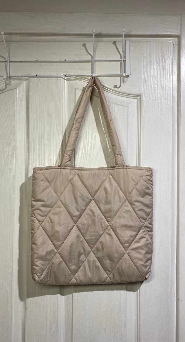 Bej renkte, fermuarlı ve desen içermeyen kadın çantasıdır. Günlük sokak stiline uygundur ve sentetik kumaştan yapılmıştır.