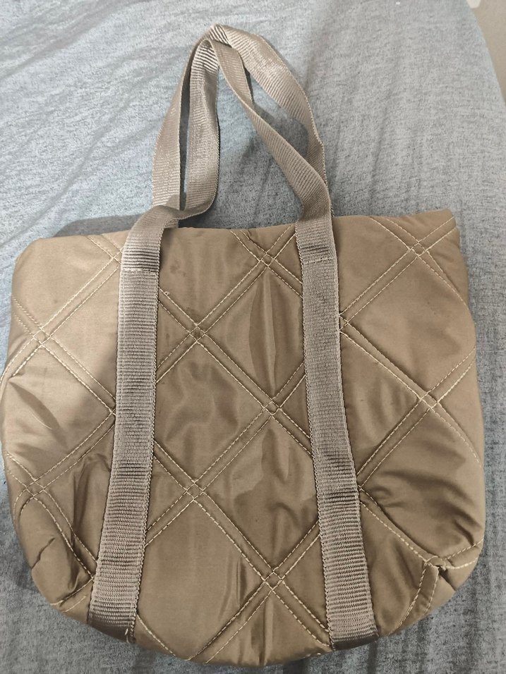 Bej renkte, sentetik kumaştan üretilmiş fermuarlı, kapitone detaylı kadın omuz çantası. Günlük kullanıma uygun, rahat ve sade tasarım.