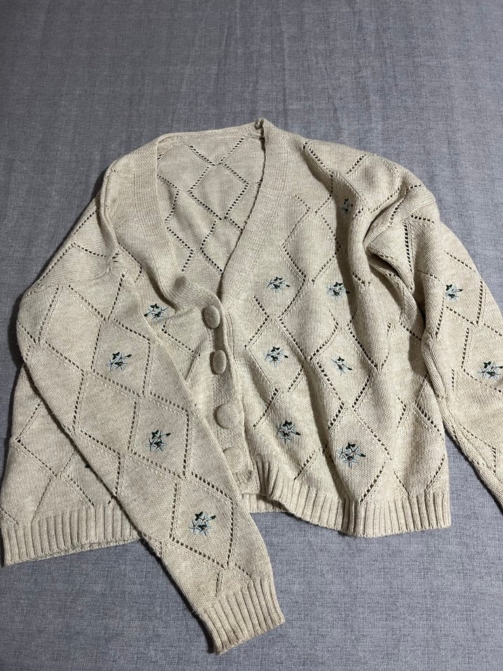 düğmeli çiçek detaylı crop hırka hediye geldi