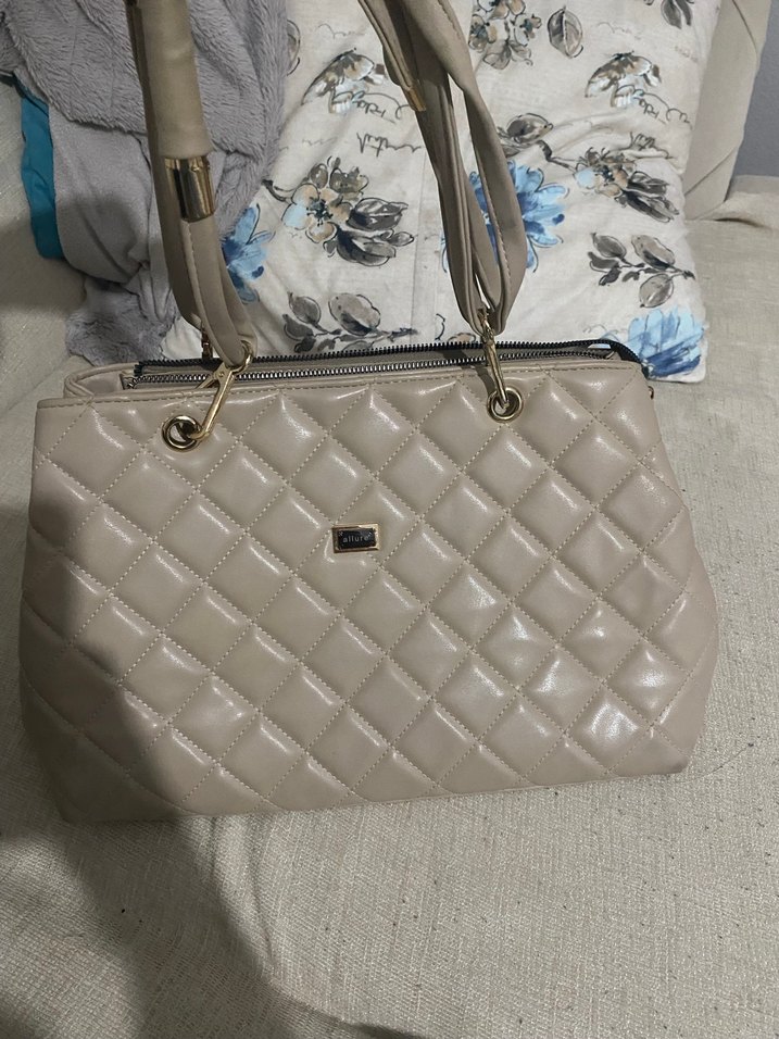 Bej renkli, kapitone desenli sentetik kumaştan yapılmış fermuarlı kadın çantası, modern klasik tarzda günlük kullanıma uygun. Fermuarının orda fotolarda goruldugu gibi kusurlar var o yüzden ücreti uygun tutuyorum
